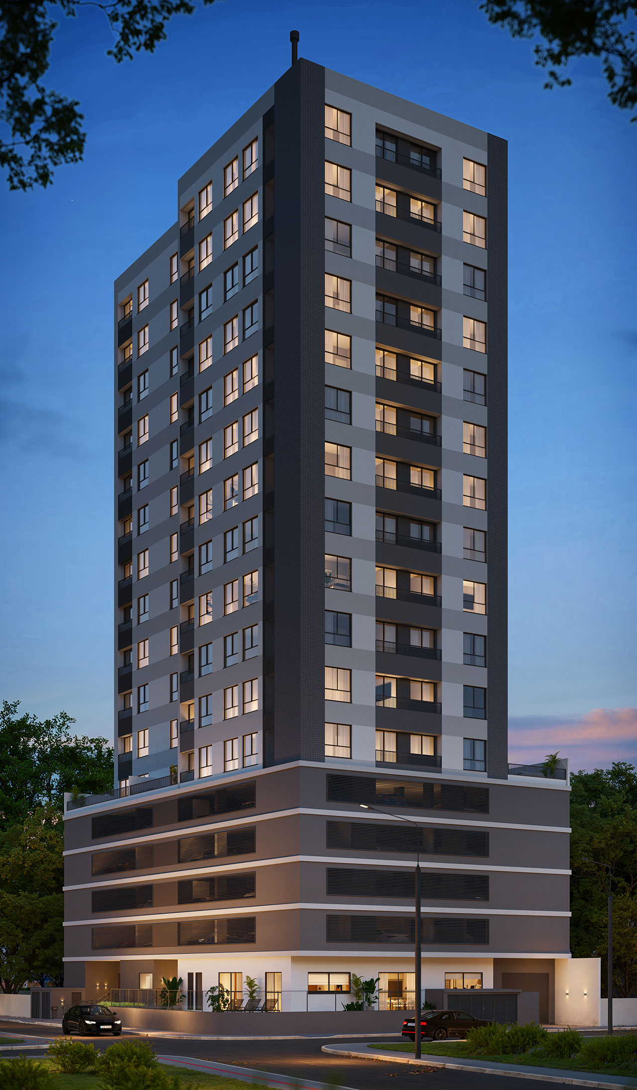 - Fachada com pastilha e pintura projetada;
