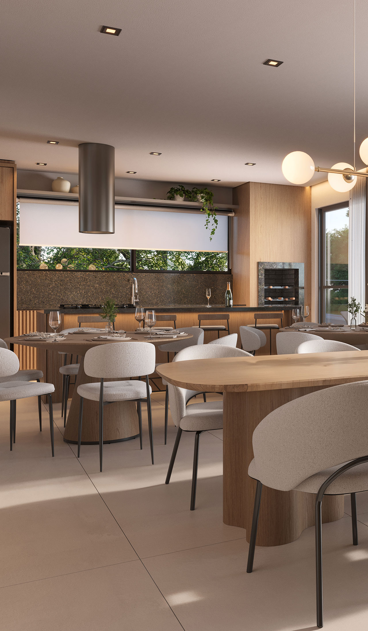 - Living integrado com cozinha e área de serviço;